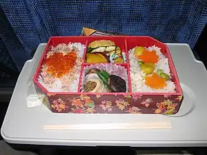 Ekiben (駅弁?) (mâncare împachetată de mâncat în tren) este un tip specific de mâncare împachetată bento, vândută în trenuri sau în gară în Japonia. În zilele noastre multe tipuri de ekiben pot fi cumpărate de la standuri din gări, la peron sau chiar în tren. Sunt vândute împreună cu bețișoare din lemn de unică folosință și (la nevoie) cu linguri. Vasele de ekiben pot fi făcute din plastic, lemn sau ceramică. Multe gări de tren au ajuns să devină faimoase pentru ekiben-ul delicios pe care îl servesc, făcut din specialități locale. Însă, „epoca de aur” al ekiben-ului s-a terminat acum trei decenii. La acel moment zborurile erau scumpe și viteza trenurilor era mai mică. Mulți turiști aveau nevoie să mănânce ekiben pe durata drumului cu trenul.[1]