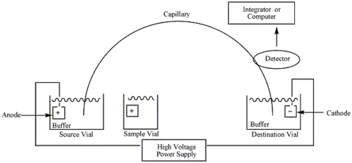 Aparatura de bază folosită într-un sistem de electroforeză capitală conține: compartimentul cu probă, compartimentele sursă și destinație, capilara, electrozii, sursa de tensiune înaltă, detectorul și instrumentul de colectare și interpretare a datelor (computer).
