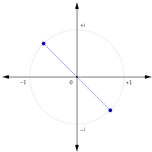 - Numere complexe: . În planul complex, această operație rotește un număr complex cu 180° în jurul originii (a se vedea imaginea de mai sus).
