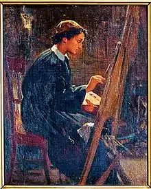 Autoportret în haine bărbătești, pictând portretul lui Jane Benham Hay, Eleni Boukoura-Altamoura, ulei pe pânză, dată necunoscută