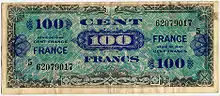 Administrația AMGOT în Franța fusese stabilită de Statul Major american, dar opoziția fermă a lui de Gaulle la strategia lui Eisenhower, care urmărea înaintarea rapidă spre est și ocolirea Parisului pentru a face posibilă cucerirea Berlinului mai înainte ca Armata Roșie să ajungă acolo, a făcut ca Divizia a 2-a blindată franceză să atace spre capitala Franței și să desăvârșească eliberarea Parisului.[13] În cadrul programului AMGOT pentru Franța, americanii tipăriseră bancnote numite „moneda steag” (monnaie drapeau) pentru a înlocui banii Regimului de la Vichy, după succesul Operațiunii Overlord. Aceste hârtii de valoare au avut o viață scurtă, președintele Guvernului provizoriu al Republicii Franceze, Charles de Gaulle, scoțându-le rapid din circulație după eliberarea Parisului.