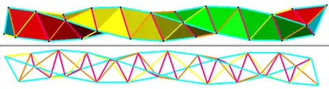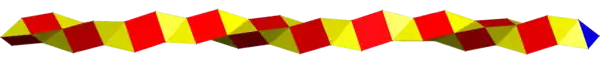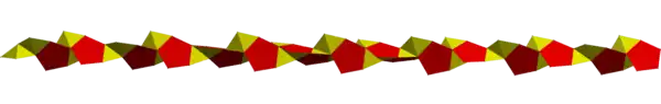 Și piramidele pentagonale echilaterale pot fi înlănțuite, având 3 configurații ale vârfurilor, 3.3.5, 3.5.3.5 și 3.3.3.5.3.3.5: