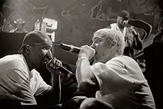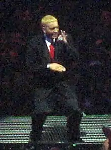 Marshall Bruce Mathers III (n. , St. Joseph(d), Missouri, SUA),[9] cunoscut mai bine sub numele de scenă Eminem, este un rapper și actor american. Eminem este artistul cu cele mai mari vânzări din anii 2000 în Statele Unite.[10] Revista Rolling Stone l-a clasat pe poziția #82 în topul său „The 100 Greatest Artists of All Time”[11] și l-a declarat „Regele muzicii Hip Hop”.[12] Incluzând și activitatea sa din trupele D12 și Bad Meets Evil, Eminem are la activ 10 albume de poziția #1 în topul Billboard 200. Eminem a vândut peste 170 de milioane de albume și single-uri, fiind artistul cu cele mai mari vânzări din toate timpurile în lume.[13] În iunie 2014, el este al șaselea artist cu cele mai mari vânzări din Statele Unite și artistul hip-hop cu cele mai mari vânzări din lume, având vândute 45.160.000 de albume și 31 de milioane de single-uri digitale.[14][15]