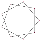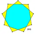 - La una din forme pasul stelării leagă fiecare al doilea punct și este reprezentată de simbolul Schläfli {9/2}.
