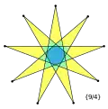 - La cealaltă formă, numită uneori marea eneagramă, pasul stelării leagă fiecare al patrulea punct și este reprezentată de simbolul Schläfli {9/4}.