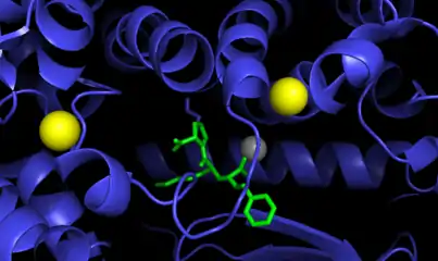 ECA este o metaloenzimă pe bază de zinc[12]. Ionul de zinc este esențial pentru activitatea sa, deoarece participă direct în cataliza hidrolizei peptidelor. Prin urmare, ECA poate fi inhibată de agenți de chelare a metalelor[13].