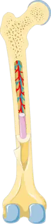 Epifiza este umplută cu măduvă roșie, care produce eritrocite (celule roșii din sânge).