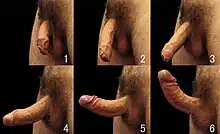 ![]() Erecția penisului uman (vedere latero-frontală: stânga - penis flasc, dreapta - penis erect) | |