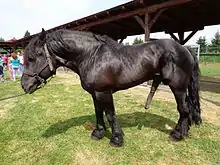 Când nu este ridicat, penisul unui cal este adăpostit în prepuț, 50 cm lungime și 2,5 cm până la 6 cm în diametru cu capătul distal de 15 la 20 cm. Mușchiul retractor se contractă pentru a retrage penisul în teacă și se relaxează pentru a permite penisului să se extindă din teacă. Când este erect, penisul își dublează lungimea [35] și grosimea, iar glandul crește de 3 până la 4 ori. [36] Erecția și proeminența au loc treptat, prin creșterea tumescenței țesutului vascular erectil din corpul cavernos al penisului. [37] [38] Majoritatea armăsarilor realizează erecția în decurs de 2 minute de la contactul cu o iapă și montează iapa la 5-10 secunde după aceea. [39]