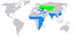 Zonă de cuibărire (vara) Habitat permanent (tot anul) Zonă de iernare | |