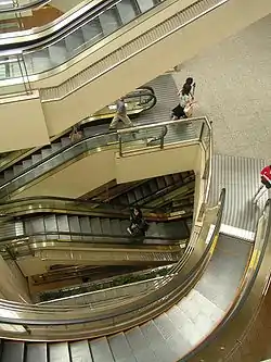 Magazinele, supermarketurile, hipermarketurile și aeroporturile leagă nivelurile (etajele) cu escalatoare, care pot fi completate și cu travelatoare.[13]