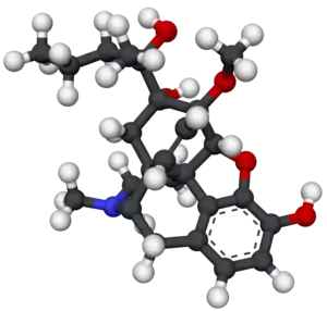 - Bentley KW, Hardy DG (iunie 1967). „Novel analgesics and molecular rearrangements in the morphine-thebaine group. 3. Alcohols of the 6,14-endo-ethenotetrahydrooripavine series and derived analogs of N-allylnormorphine and -norcodeine”. J. Am. Chem. Soc. 89 (13): 3281–92. doi:10.1021/ja00989a032. PMID 6042764.