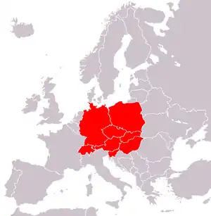 Europa Centrală așa cum este ea recunoscută în The World Factbook (2009), Encyclopædia Britannica și Brockhaus Enzyklopädie (1998)