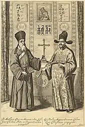 Misionarul franciscan Ioan de Montecorvino(d) (Giovanni da Montecorvino[82]) a fost trimis în China de către Papa Nicolae al III-lea în 1279.[83][84] Montecorvino a ajuns în China la sfârșitul anului 1293,[85] unde mai târziu a tradus Noul Testament în limba mongolă, și a convertit 6.000 de oameni (probabil cea mai mare parte alani, turci și mongoli, mai degrabă decât chinezi). Lui i s-au alăturat trei episcopi (Andre de Perouse, Gerard Albuini și Peregrino de Castello) și a fost hirotonit arhiepiscop de Beijing(d) de către Papa Clement al V-lea, în 1307.[74][85] O comunitate de armeni din China(d) a apărut în această perioadă. Ei au fost convertiți la catolicism de către Ioan de Montecorvino.[86][87] După moartea lui Ioan de Montecorvino, Giovanni de Marignolli a fost trimis la Beijing pentru a deveni noul arhiepiscop din 1342 până în 1346 în încercarea de a menține influență creștină în regiune.[85][88][89] Marignolli, deși nu este menționat pe nume în Istoria Yuanului(d), este consemnat în acest text istoric ca „francul(d)" (Fulang) care a dat curții imperiale Yuan un impresionant cal de război și daruri ca tribut.[85]
