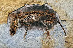 | Fosila unui specimen de Eomaia scansoria, un eutherian timpuriu | |