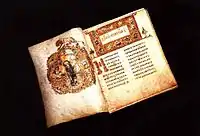 Acest evangheliar este un manuscris cu miniaturi; aceasta nu conține cele patru evanghelii la rând, ci prezintă lecturi de sărbătoare și de duminică și începe cu începutul Evangheliei lui Ioan („La început a fost cuvântul ...”). Este scris de mână pe două coloane pe 294 de foi de pergament de dimensiunea 20 x 24 cm. Fiecare pagină conține optsprezece linii. Cartea este încheiată de notificarea scribului despre circumstanțele creației manuscrisului.