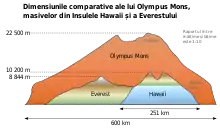 - „Baza” unui munte este o noțiune în general problematică fără o definiție universal acceptată. Totuși, pentru un vârf care se află pe un teren relativ plat, cum sunt Mauna Kea și Denali, se poate calcula o înălțime aproximativă deasupra „bazei”. Pentru Everest, situația este mai complicată, deoarece el este pe un teren relativ plat doar în partea sa nordică (înspre Podișul Tibet). Astfel, conceptul de „bază” are și mai puțin sens pentru Everest decât pentru Mauna Kea sau Denali, iar intervalul de numere pentru înălțimea „de la bază la vârf” este mai larg. În general, comparațiile bazate pe înălțimea „de la bază la vârf” sunt întrucâtva lipsite de substanță.
