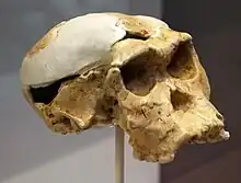Homo neanderthalensis, desemnat alternativ ca Homo sapiens neanderthalensis,[66] a trăit în Europa și Asia acum 400.000[67]-28.000 de ani.[68] Există o serie de diferențe anatomice clare între oamenii moderni din punct de vedere anatomic și populațiile neanderthaliene. Multe dintre acestea se referă la adaptarea superioară la mediile reci a populațiilor neanderthaliene. Neanderthalienii aveau, de asemenea, un creier semnificativ mai mare. Acest lucru pare să indice că superioritatea intelectuală a populațiilor oamenilor modeni in punct de vedere anatomic poate fi discutată. Cercetări mai recente[69] au arătat importante diferențe în arhitectura creierului. De exemplu, atât în dimensiunea globului ocular cât și în dimensiunea lobului occipital, o mărime mai mare sugerează că Neanderthalul avea o acuitate vizuală mai bună decât oamenii moderni, ceea ce ar fi constituit un avantaj în condițiile de lumină inferioară găsite în Europa erei glaciare.