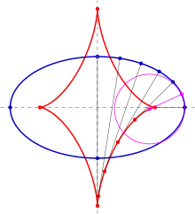 Acestea sunt ecuațiile unei astroide nesimetrice. Eliminarea parametrului duce la reprezentarea implicită
