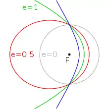 Excentricitatea este definită strict pentru toate orbitele circulare, eliptice, parabolice și hiperbolice și poate avea următoarele valori: