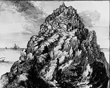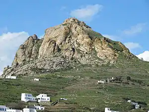 Muntele a fost locul unei cetăți și al unui oraș care a funcționat ca centru administrativ al insulei din 1207 când insula, alături de Andros, Skiathos(d), Skopelos și Skyros a devenit o feudă a fraților venețieni Jeremie și Andre Ghisi (vezi Ducatul Arhipelagului) în urma împărțirii Imperiului Bizantin după cucerirea de către latini a Constantinopolului în timpul cruciadei a patra.[7]
