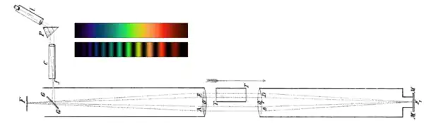 ![]() Hoek se aștepta ca spectrul observat să fie continuu când aparatul este orientat transversal față de vântul eteric, și să prezinte benzi când aparatul este orientat paralel cu vântul. În experimentul real, el nu a observat benzi în nicio orientare a instrumentului. |