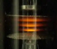 - La diferențe de potențial mici — până la 4,9 volți — curentul prin tub crește constant cu creșterea diferenței de potențial. Acest comportament este tipic pentru tuburile de vid adevărate care nu conțin vapori de mercur; tensiunile mai mari conduc la un „curent limitat de sarcină spațială(d)”.