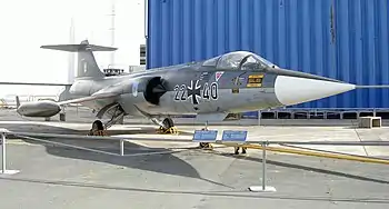 Lockheed F-104 Starfighter este un interceptor monomotor supersonic de înaltă performanță. Timp de 30 de ani a fost interceptorul standard al țărilor membre ale NATO. Datorită formei sale, a fost supranumit "racheta pilotată". Proiectat în 1950 ca o consecință a Războiului Coreean, fiind ușor, simplu și având performanțe uluitoare, aparatul F-104 al celor de la Lockheed a fost dezvoltat în cele din urma într-un avion de interceptare sofisticat, care putea zbura în toate condițiile meteorologice. F-104 a rămas in serviciu operativ pana in 2004.