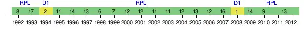 | 1992 | 1st | 8 | 26 | 8 | 7 | 11 | 22 | 28 | 23 | |||||