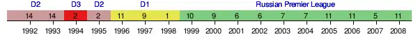 Locul ocupat la finalul sezoanelor în ligile din Rusia