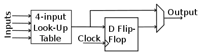 Un bloc logic FPGA clasic este alcătuit dintr-un tabel de căutare cu 4 intrări, un flip-flop și un multiplexor care selectează fie ieșirea tabelului de căutare, fie ieșirea sincronizată a acestuia (trecută prin flip-flop).