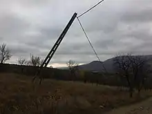 Stâlp electric in pericol de cadere între Fața lui Nan și drumul județean DJ203L in Bălănești