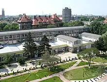 Inițial clădirea conținea un amfiteatru, două săli de curs, două săli de desen, 15 laboratoare, 3 muzee, 9 birouri și un atelier.[13] În anul 1970 clădirii i s-a adăugat înspre nord aripa nouă,[9] care va fi supraetajată în 1978, spațiile obținute prin supraetajare fiind folosite ca ateliere de cercetare-proiectare.[14]