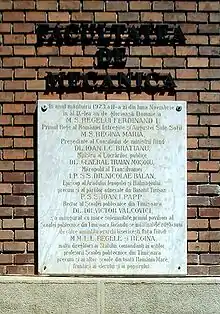Evenimentul este eternizat pe o placă de marmură, la intrarea în edificiu.[11][12]