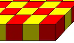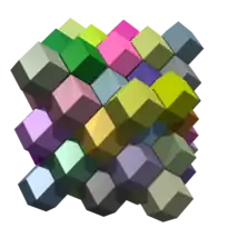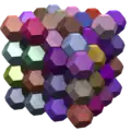 - Celule neconvexe care se împachetează fără suprapuneri, analog cu pavările cu poligoane concave. Acestea includ o împachetare a micului dodecaedru rombic stelat (prima variantă de stelare), ca în cubul Yoshimoto.