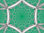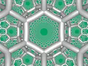 În spațiul hiperbolic tridimensional, unghiul diedru al unui poliedru depinde de mărimea acestuia. Fagurii hiperbolici regulați sunt de două feluri, cu patru sau cinci dodecaedre care se întâlnesc pe fiecare latură; unghiurile lor diedre fiind și , ambele fiind mai mici decât cel al unui dodecaedru euclidian. În afară de acest efect, fagurii hiperbolici respectă aceleași constrângeri topologice ca și fagurii euclidieni și policorurile.