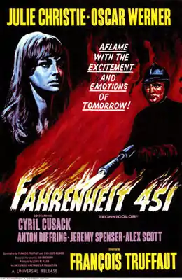Fahrenheit 451 este un film realizat în anul 1966 de François Truffaut, scenariul având la bază romanul cu același nume de Ray Bradbury. Filmul este regizat de François Truffaut, avându-i în rolurile principale pe Julie Christie, Cyril Cusack și Oskar Werner. Într-un viitor opresiv, un pompier a cărui datorie este de a distruge toate cărțile începe să pună la îndoială sarcina lui. Temperatura de 451 grade Fahrenheit (aprox. 233°C) este declarată a fi "temperatura la care hârtia începe să ardă".