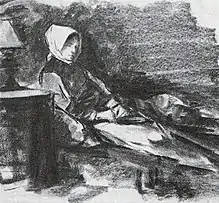 - „C-o zi înainte de a se pierde, Grigorescu trimise să cheme la el pe d-rul Istrati de acasă și să-l roage cu glas aproape stins: «Să-l cunune cu femeia cu care trăia de 18 ani». Doctorul Istrati i-a promis, dar mai întâi să se facă bine. Grigorescu însă a doua zi, la 21 iulie 1907, și-a închis ochii. Întins în atelier într-un sicriu modest, Grigorescu stătea nepăsător acum, în mijlocul tablourilor sale de pe pereți. Până să vie preotul, voii să văd camerele în care trăise el. În ușa celei din urmă, găsii pe mama copilului lui, îmbrăcată în negru, stând tristă… O întrebai de ultimele momente ale lui Grigorescu și ea îmi răspunse câteva cuvinte cu buzele tremurând. Brună, cu trăsăturile regulate, cu părul castaniu închis, adus puțin pe frunte, cu ochii negri, cu mâinile mici, îmi aminti de unele din figurile lui din tablouri și îndeosebi țărăncuța din Primăvara”[38].