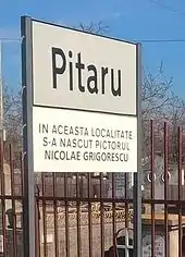 În ziua de astăzi, localitatea Pitaru este o așezare care are câteva sute de case, dispuse în toate direcțiile pe de-o parte sau alta a drumului principal care derivă din șoseaua națională.[1] În trecut existau trei sate Moara Crovului, Strîmbeanu și Pitaru, toate trei fiind mai apoi înglobate într-o singură comună cu numele unui Văcărescu,[2] care avusese acolo o moșie,[3] și mai târziu cu numele de Pitaru, astăzi făcând parte din comuna Potlogi.[1] Istoricul George Oprescu a fost de părere că așezarea ar avea o vechime de circa 200 de ani, la momentul 1961 când a scris monografia lui Grigorescu, luând în considerare faptul că Palatul brâncovenesc de la Potlogi era situat la doar câțiva kilometri de satele Pitaru și Strîmbeanu care au biserici construite încă de la jumătatea secolului al XVIII-lea.[1]