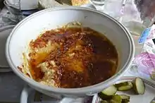 Mâncarea se poate ingera caldă sau rece. Se servește ori ca aperitiv cu ceapa prăjită și murături, ori ca garnitură la un grătar mixt sau cârnați afumați.[3]