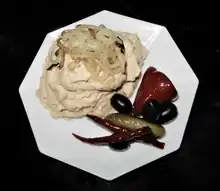 Fasolea fiartă se zdrobește cu furculița sau cu ustensila pentru piure de cartofi, ori se mărunțește într-un mixer cu adăogare de usturoi, sare și piper (opțional și boia). Se adaugă în timpul procesului ulei sau, dacă se renunță la el, puțină zeamă rămasă de la fiert și se bate bine. Dacă compoziția este produsă manual, se recomandă trecerea piureului prin sita fină sau prin telul de cartofi pentru a obține o pastă cât mai fina și mai mătăsoasă, iar dacă se prepară cu ajutorul unui blender, se adaugă usturoiul, uleiul (câte puțin, ca la o maioneză) și se omogenizează bine totul. Se călește sau prăjeste ceapa tăiată rondele într-o tigaie cu puțină sare și se adaugă peste fasole.[3][4]