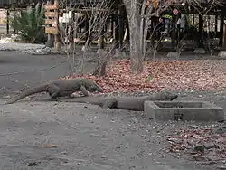 Dragonul Komodo (Varanus komodoensis), cea mai mare șopârlă din lume, poate atinge 3 metri lungime. Habitatul lui este în grupul de rezervații Komodo, care include insulele Komodo, Padar și Rinca, în largul coastelor insulei Flores în estul țării. Dragonul de Komodo secretă în salivă o toxină care împiedică coagularea sângelui și care provoacă hipotensiune arterială, printre alte simptome. Pacientul trebuie tratat în 30-45 minute cu medicină modernă sau cu un leac tradițional obținut dintr-o tocană din polenul orhideii lunii. Efectele otrăvii asupra corpului sunt: amețeli, stări de vomă și o dureri ale zonei mușcate. Varanul nu este numai un bun vânător, ci și o bună mamă. Femelele își apără puii foarte bine. Cu ajutorul camuflajul, dragonul de komodo pare a fi indestructibil.