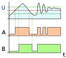 - „CMOS Schmitt Trigger—A Uniquely Versatile Design Component” (PDF). Fairchild Semiconductor Application Note 140. Fairchild Semiconductors. . Accesat în .