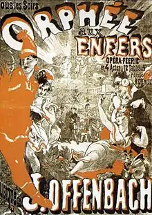 Afişul anunţând spectacolul cu opera-feerie Orfeu în infern, de Jacques Offenbach