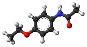 Fenacetina este o substanță medicamentoasă cu proprietăți analgezice și antipiretice, care a fost utilizată în trecut pentru tratamentul durerilor și febrei. Structura sa este similară cu cea a paracetamolului, fiind un promedicament al acestuia. Medicamentul a fost retras de pe piață, în Canada din anul 1973[11], iar în Statele Unite din 1983, fiind introdusă pe piață în anul 1887.[12]