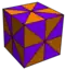 | Rombicuboctaedrul are 1 tip de triunghiuri și 2 tipuri de pătrate |