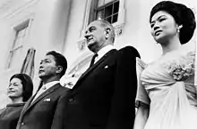 În 1965, Ferdinand Marcos a fost ales președinte, avându-și alături soția, Imelda Marcos. Deoarece constituția îi interzicea să fie reales de mai mult de două ori în funcția prezidențială, la sfârșitul celui de-al doilea mandat a declarat legea marțială la 21 septembrie 1972. Pentru a continua să guverneze prin decret, el a folosit ca argumente diviziunea politică, tensiunile din timpul Războiului Rece și spectrul rebeliunii comuniste și al insurecției islamice din țară.71 A început astfel o dictatură care a durat mai mult de zece ani și care a fost caracterizată de un control strict al economiei și de represiune politică.[72][73]