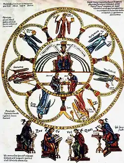 La începutul secolului 10, Remigiu de Auxerre, a scris glose sau comentarii la textele clasice ale lui Donatus, Priscian, Boethius și Martianus Capella. Perioada carolingiană a fost urmată de o mică perioadă întunecată care a fost urmată de o renaștere a studiului în secolul 11, ce a datorat mult redescoperirii gândirii grecești prin traducerile arabe și contribuțiile musulmane precum Despre suflet de Avicenna.[18]