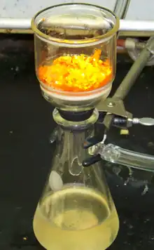 Filtrare în vid realizată cu ajutorul unui vas de trompă și a unei pâlnii Pahar Büchner