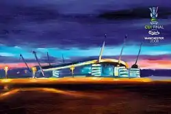 În ultimii ani, finalei Cupei UEFA i s-a dat o importanță aparte, cu un log unic, design complex și un fundal specific. Obiectivul este acela, ca acest eveniment sportiv să devină unul dintre cele mai importante din lumea sportului. Pe 6 decembrie, design-ul și logo-ul finalei au fost prezentate publicului, imaginea stadionului din Manchester fiind folosită de UEFA cu acordul creatorului său, Liam Spencer.